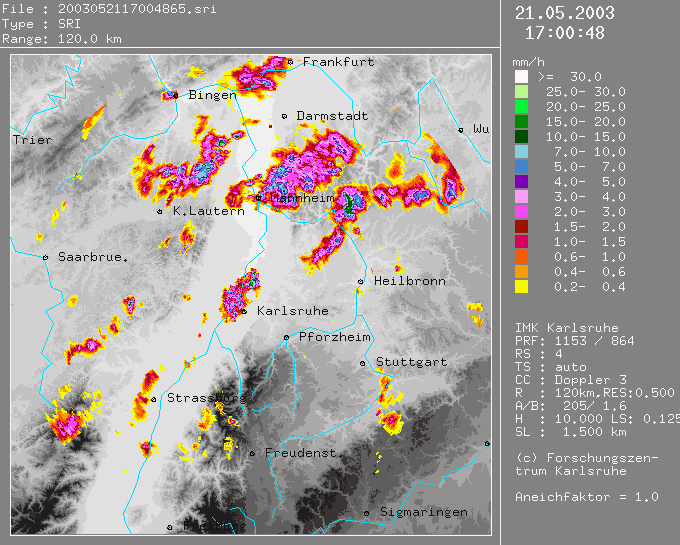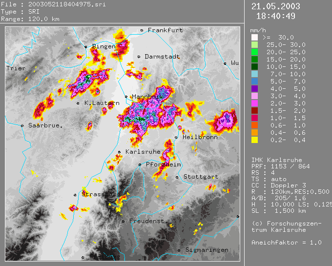 vom 21.05 von 17-19 Uhr und von 19-21 Uhr zusammen ca. 20mm. Direktlink zu den Tagesdaten