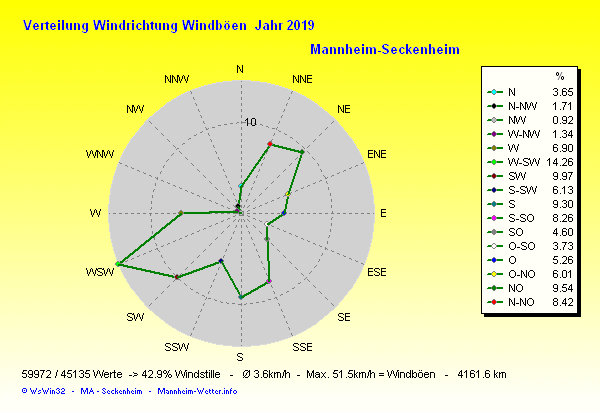Am wärmsten war es am 25.07.2019 um 16:30 mit 39.7°C. Am kältesten mit -6.3°C am 21.01.2019 um 07:45.