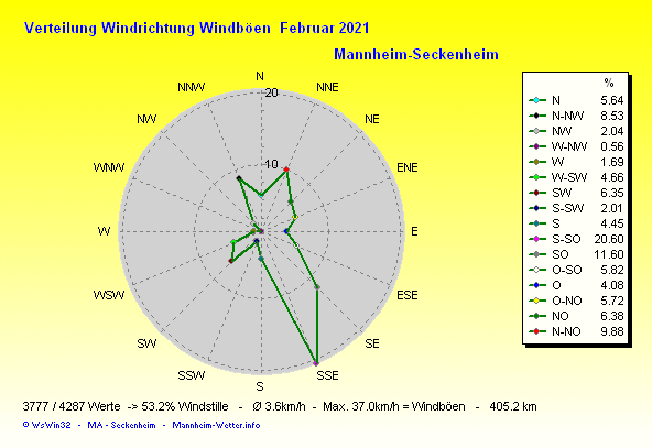 Es gab 397.2 Heiz-Gradtage, 0.0 Kühl-Gradtage, 40.2 Wachstums-Gradtage und 452.0 X-Heiz-Gradtage.