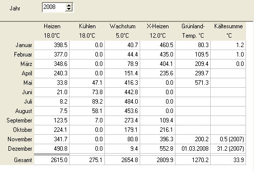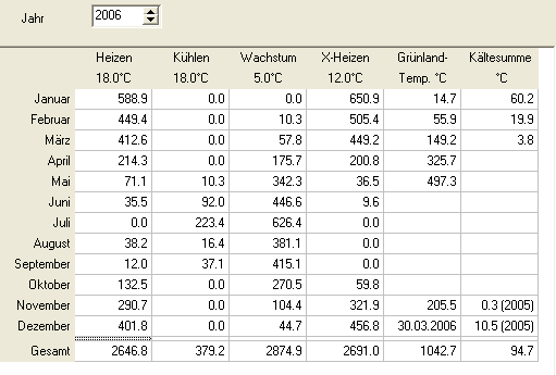 Die Definition vom DWD mit Links auf ausgewählte Deutsche Stationen mit Gradtagen.