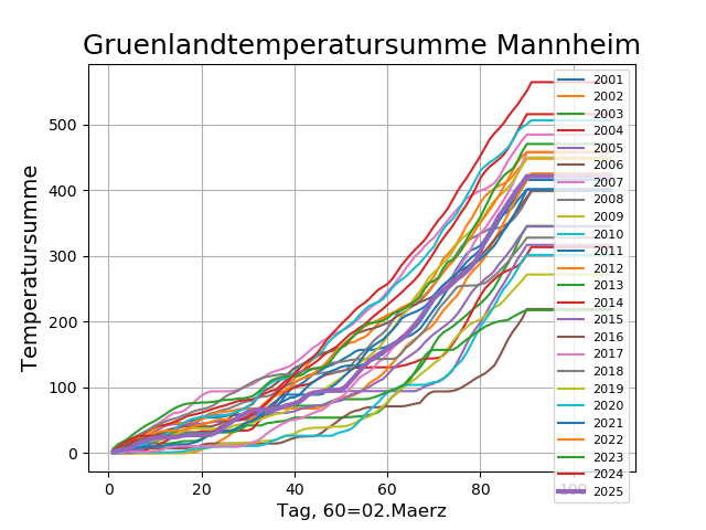 In 2024 wurde die Summe von 200 schon am 20.02. trotz vieler Frosttage im Januar erreicht.