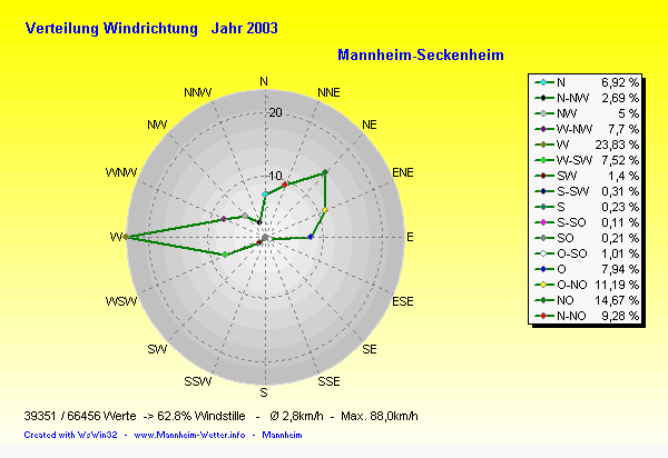 Die Durchschnittstemperatur für das Jahr 2003 lag bei 11.97°C. Die Abweichung vom langjährigen Mittel war +1.77°C.